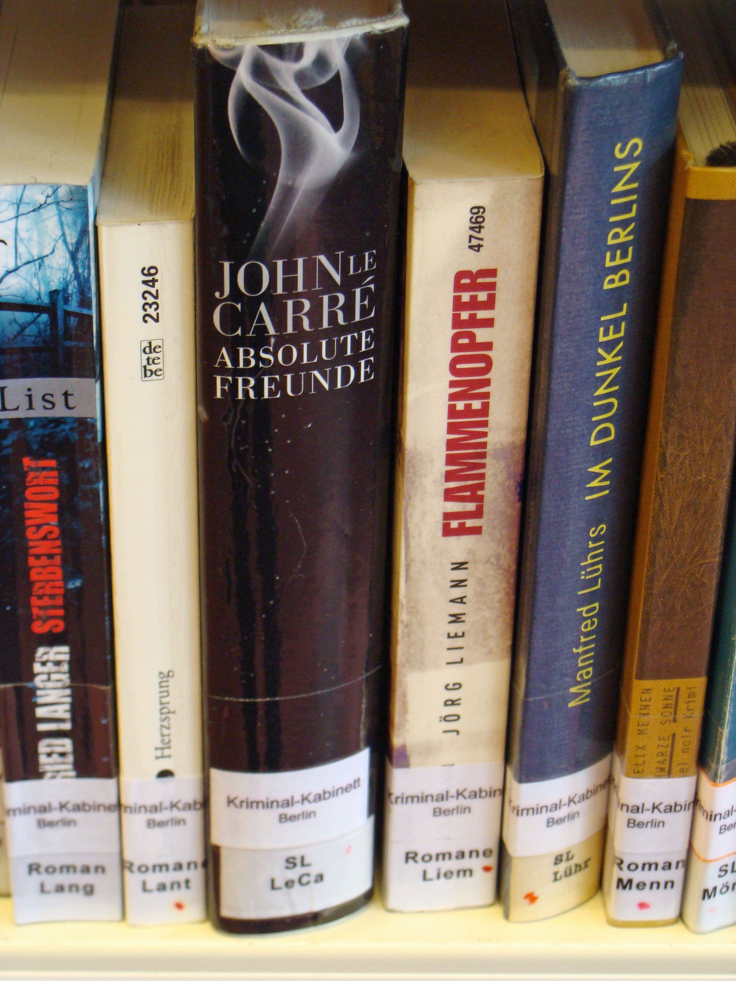 Ikke mindst er det interessant at se de mange berlinerkrimier, skrevet af både tyske og udenlandske forfattere. Nu kommer det jo ikke bag på nogen, at Berlin er byen par excellence inden for spionromaner, og bl.a. John le Carré fylder godt på hyldene.