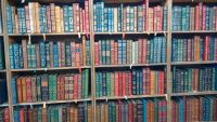 Vi har, som på et bibliotek i gamle dage, hver sine ansvarsområder, et af mine er en opstilling, jeg kalder “klassikere”. Det har været en meget stor fornøjelse at se unge mennesker, finde en læder-indbundet bog og kærligt klappe den: ja SÅDAN skal den se ud! De unge køber fx Dickens og H.C. Andersen og sågar en samlet Shakespeare i smuk indbinding, og en midaldrende herre finder en Dostojevskij, han ikke havde i samlingen. Bøgerne på disse specielle hylder må gerne “ligne” klassikere (klicheen : det fine læderbind), men en temmelig slidt Hemingwaytitel, der ikke er set længe, kommer også på hylden.